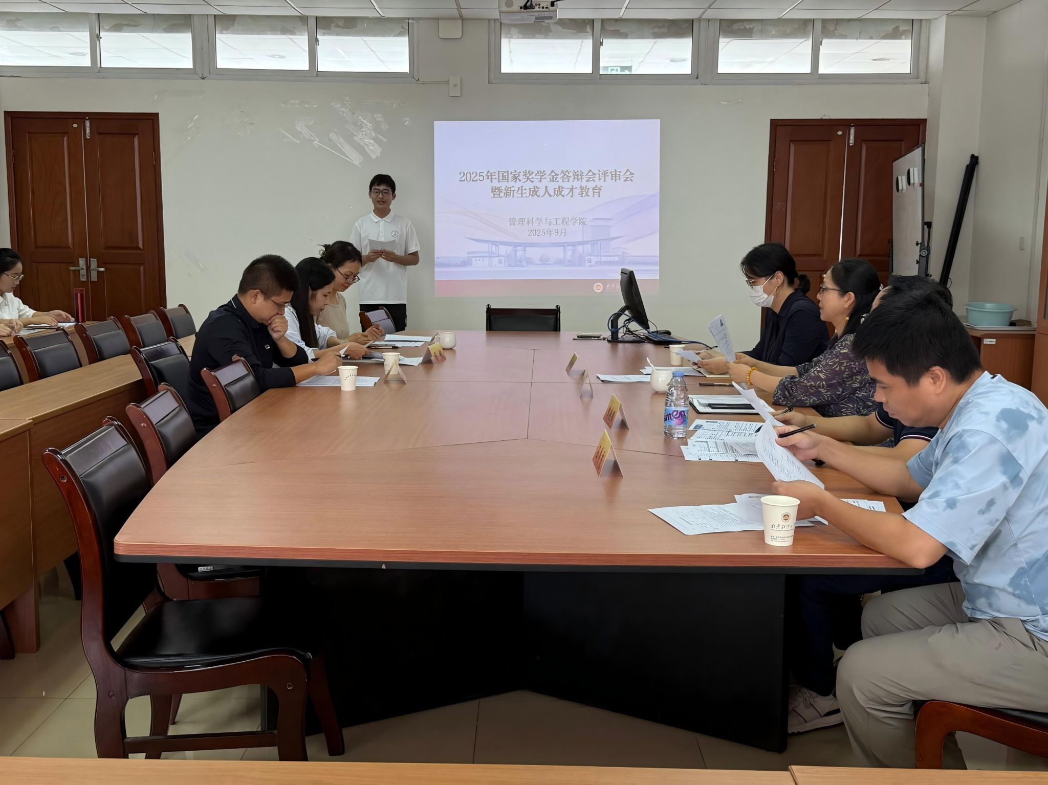 为扎实做好国家奖学金评选工作,发挥优秀学子示范引领作用,促进学风建设,9月28日上午,伟德国际19462025年国家奖学金答辩评审会暨新生成人成才教育活动在德济楼507会议室举行。经学院初审,共有四位本科生和一位研究生参加答辩。伟德国际1946党委书记金立林老师、党委副书记王卓君老师、管理科学系主任王月虎老师、质量管理工程系主任李晓鹏老师、杨帆老师、分团委书记兼辅导员陆秀军老师、本科生党支部纪律委员兼辅导员唐琰老师以及学院本科生出席本次评审会。
