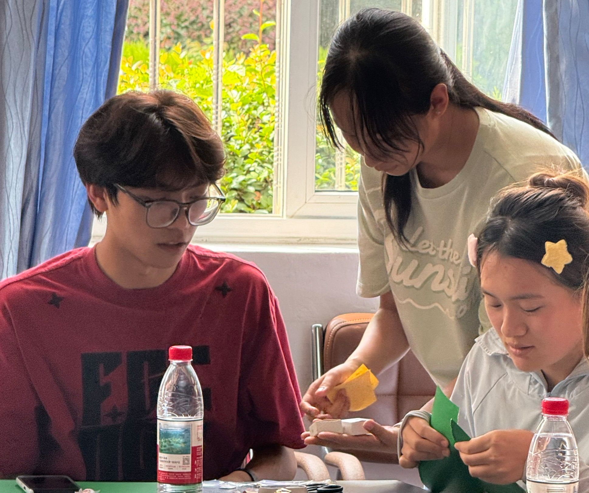 活动伊始,主持人郑子辰引导学生们分组并详细讲述了比赛规则。趣味互动游戏区设立了“中秋灯谜大闯关”和“中秋剪纸”两个游戏摊位。学生们积极参与,亲手制作中秋灯谜和剪纸,不仅锻炼了动手能力,还加深了对中秋文化的理解。猜对灯谜的学生还可以兑换月饼、中秋主题钥匙扣等精美礼品,现场气氛热烈而欢快。