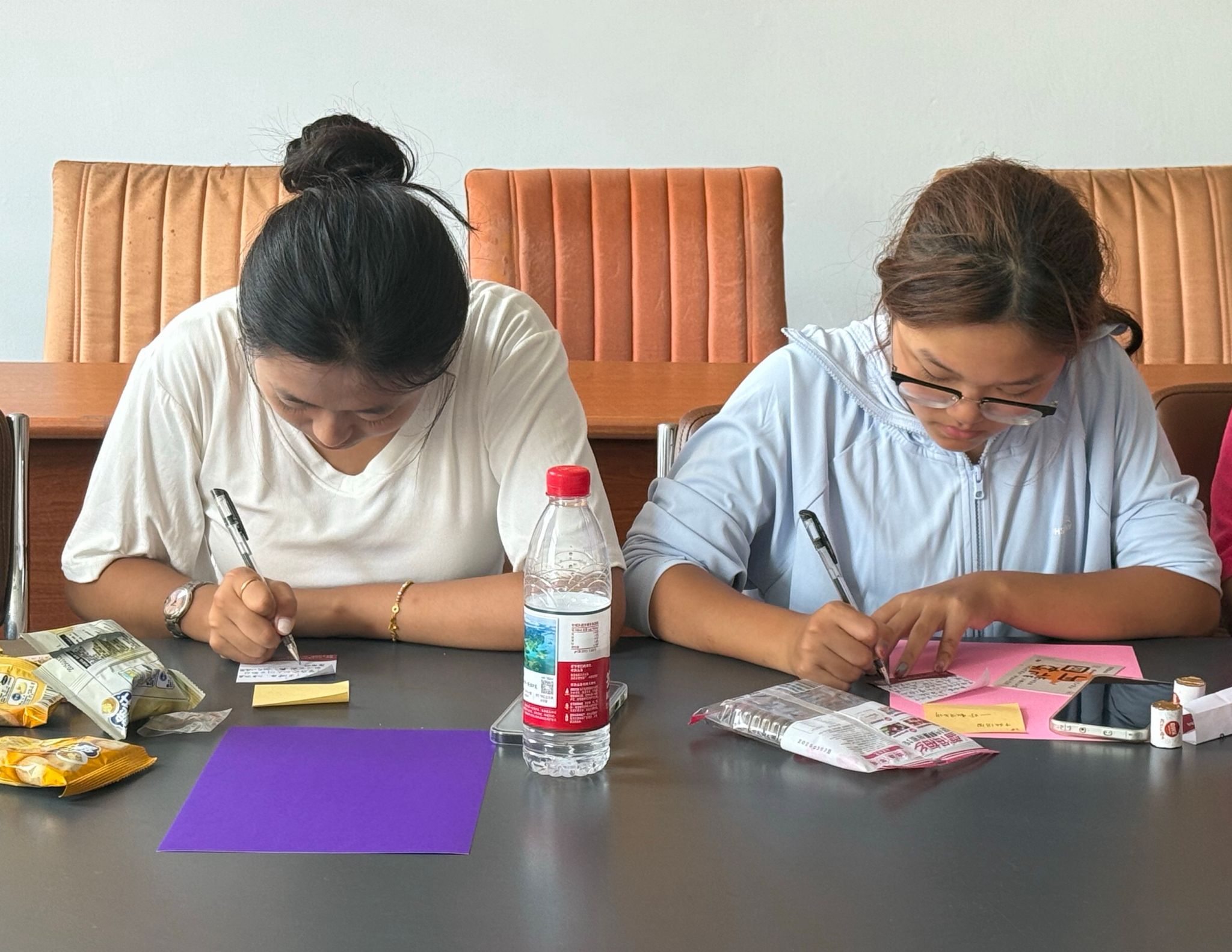 此外,同学们纷纷在便利贴上写下自己过往中秋的难忘经历或对家人的祝福,贴在“中秋记忆墙”上,共享温情瞬间。无论是哪个民族的同学,都或多或少远离家乡来到这里求学,这份小小的贴纸上承载着节日的祝福和对家人的思念。