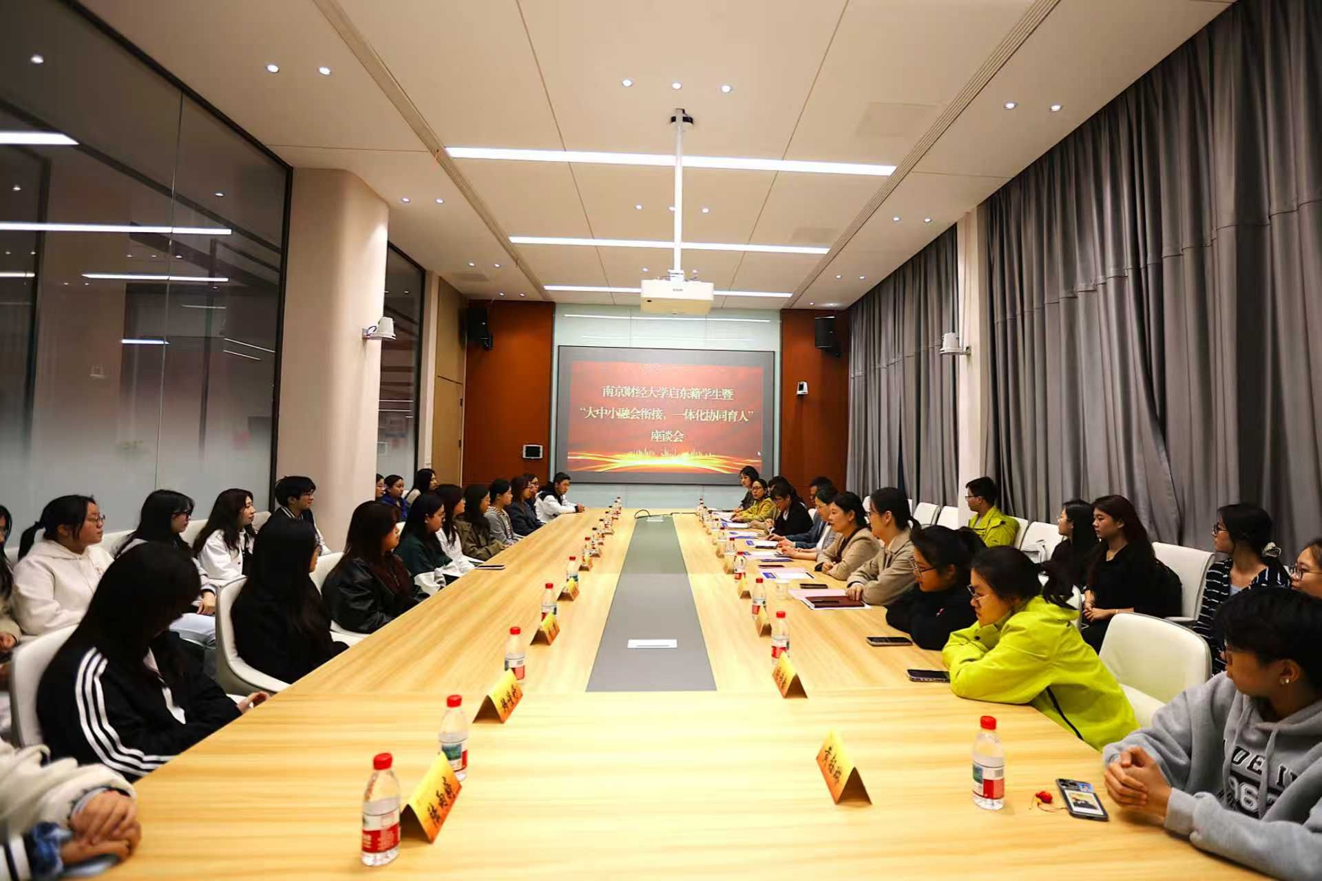 几位校领导认真聆听着同学们的发言,脸上洋溢着欣慰与自豪的笑容。殷宝霞副校长感慨道,看到孩子们在南财“吃得好、学得好、有发展”且如此充满活力,由衷地感到高兴,希望同学们在南财这片广阔天地里,继续保持勤奋刻苦的精神,不断追求卓越,未来无论走向何方,都能成为母校的骄傲,成为社会的栋梁之才。王东华副校长接着说道,同学们的分享让我们感受到了大家对高中时光的珍视,也看到了大家在大学的新起点上积极进取的姿态,希望同学们秉持初心,珍惜大学时光,不断提升综合能力,书写属于自己的精彩篇章。陆海峰副校长回应道,听着同学们的发言,仿佛又回到了那些与大家并肩奋斗的日子,今后无论遇到什么困难,都要记得高中时那份拼搏的劲头,勇往直前。陈新建副校长说道,高中三年的时光虽然短暂,但却为大家的人生奠定了重要基础,希望你们积极融入新的集体,与老师、同学相互学习、共同进步,相信在不久的将来,你们都能实现自己的梦想,为母校争光,为社会贡献自己的力量。”